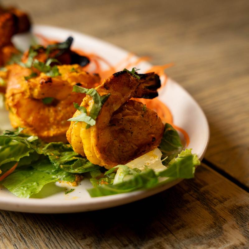 Jumbo prawns marinated and grilled in the tandoor.