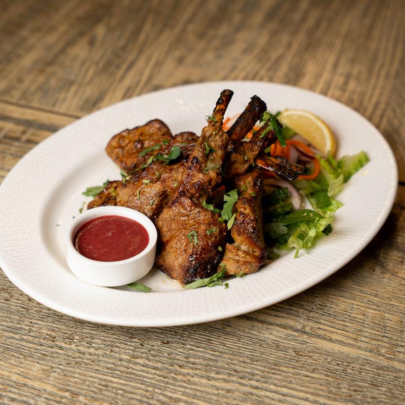 4 pieces of lamb marinated with herbs and spices, and cooked in a tandoor