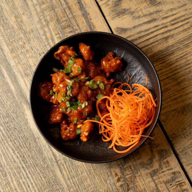 Crispy cauliflower tossed in a sweet and spicy indo-chinese sauce.